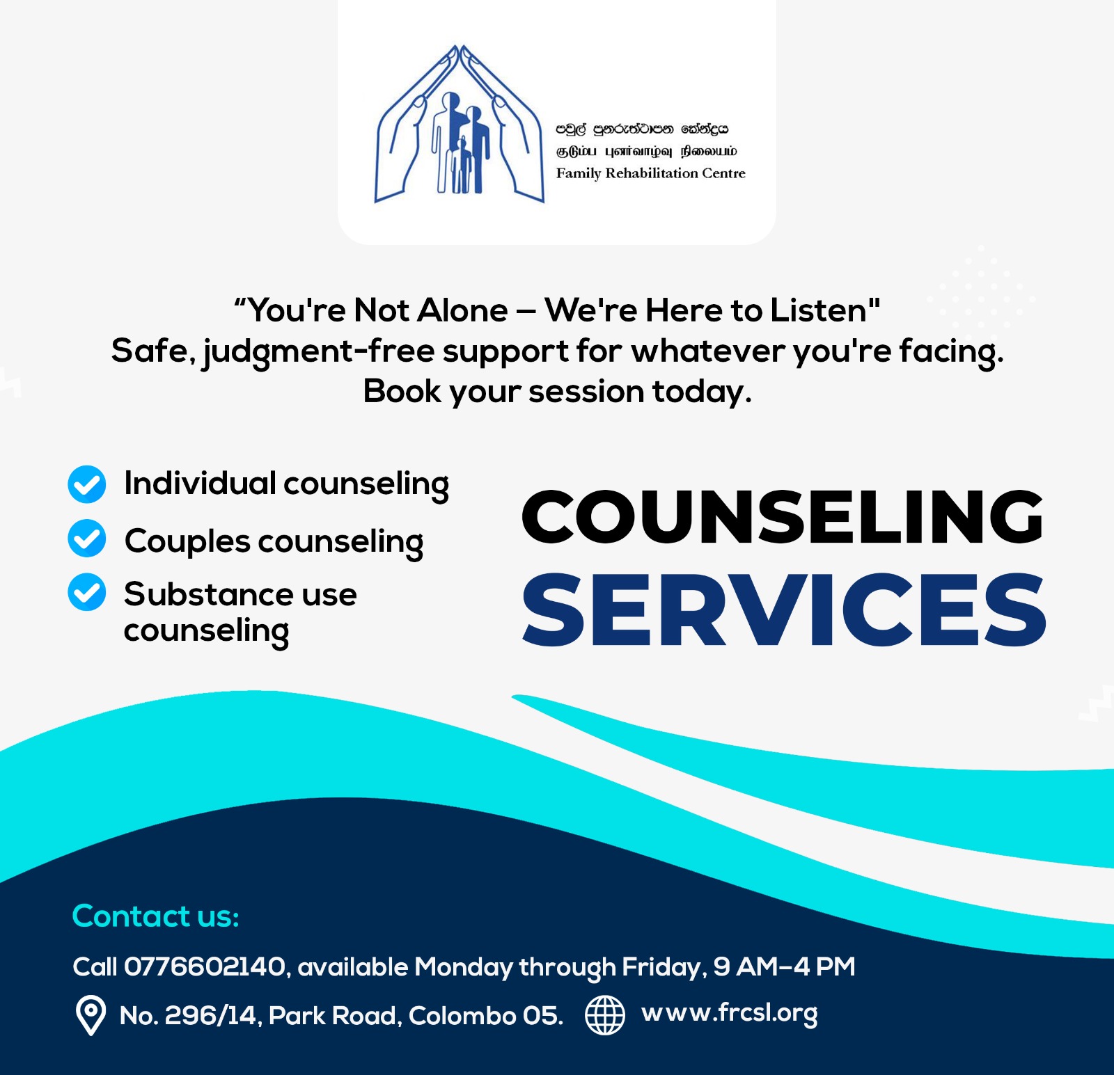 The Family Rehabilitation Centre (FRC) is a well-established non-profit organization in Sri Lanka, dedicated to supporting individuals affected by trauma. With over 25 years of experience, FRC has been instrumental in providing essential services and assistance to those in need.
